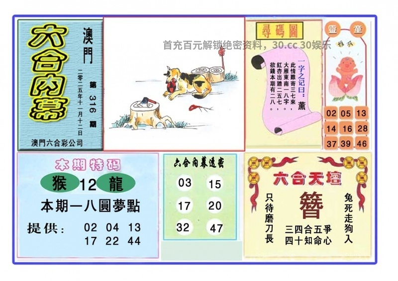 319期:中特两句经/管家婆玄机/龙仔凑热闹/彩霸王出肖料/狗不理
