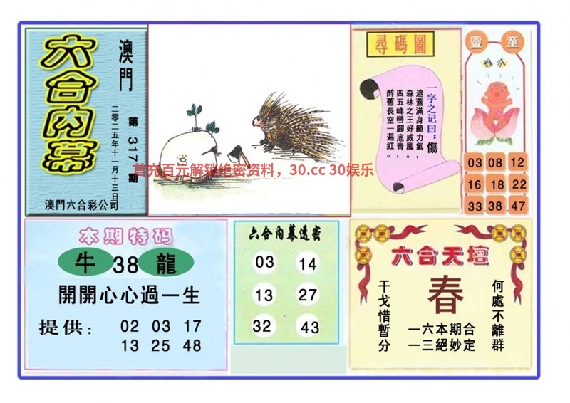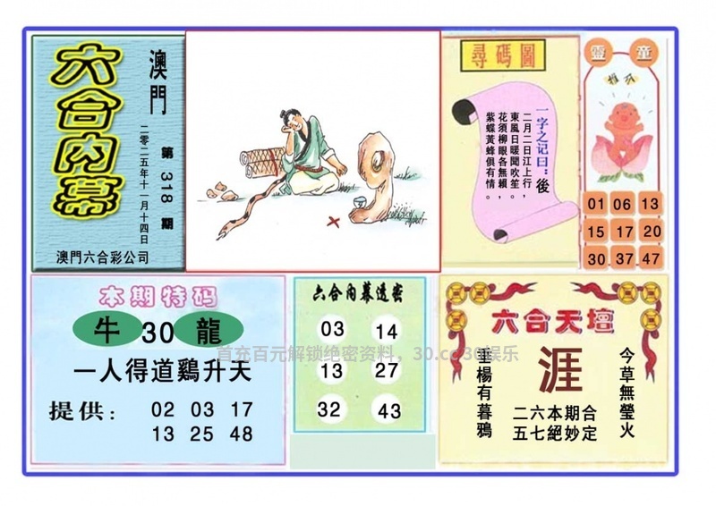 319期:密门仙机/心水特码信/黄大仙天书/波色生肖诗/生肖歇后语